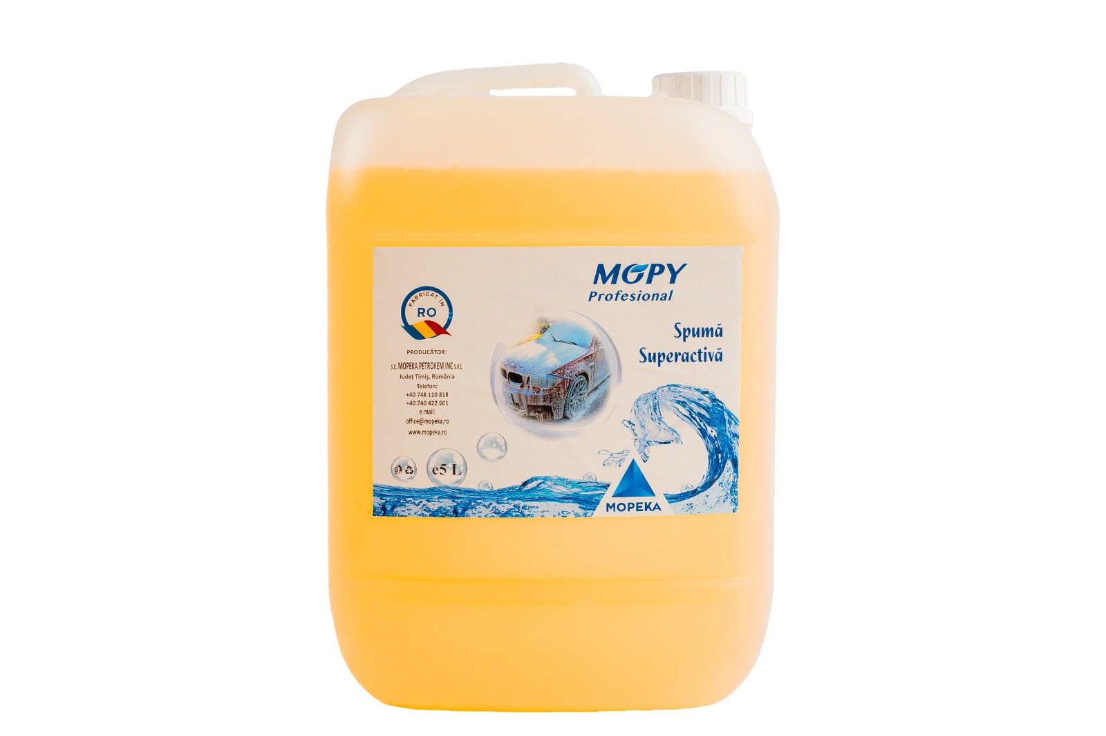 Profesional Mopy Spumă Superactivă este recomandat pentru spălarea  autoturismelor, oferind luciu suprafețelor vopsite, metalizate. Datorită caracteristicilor sale de curăţire intensivă ce se obţine şi la diluţii mari, chiar şi în prezenţa apelor dure.